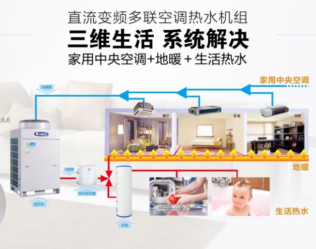 集直流变频技术、空气源热泵技术和热回收技术于一体,实现中央空调+地暖+热水三大功能于一体,成为家庭别墅、休闲会所的新宠,荣获由国家三大部及国家质量检验检疫总局联合颁发的年国家重点新产品证书